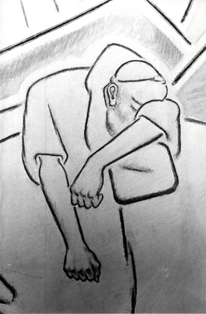 Legenden om Hellig Anders og hans ridt på et føl på Slagelse bs marker, udsmykning på Slagelse Rådhus omkring 1970 – B5788, Slagelse Stads- og Lokalarkiv